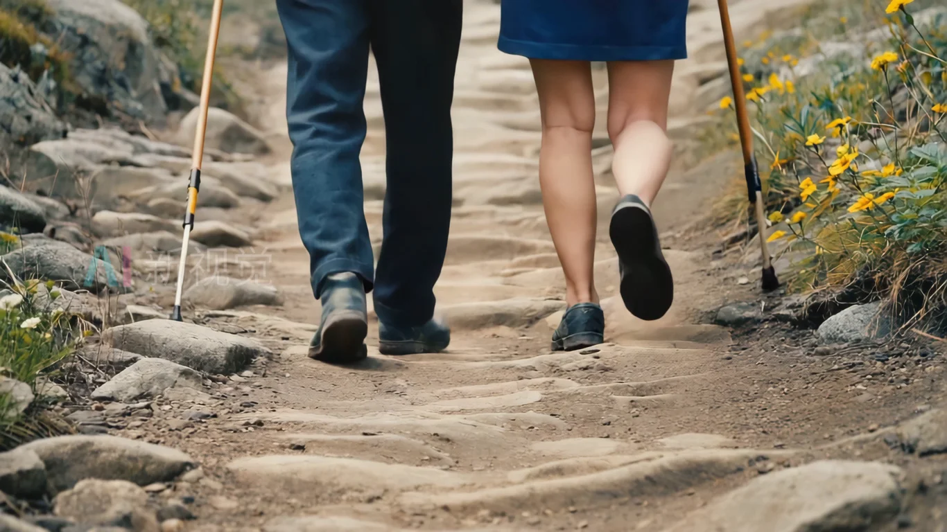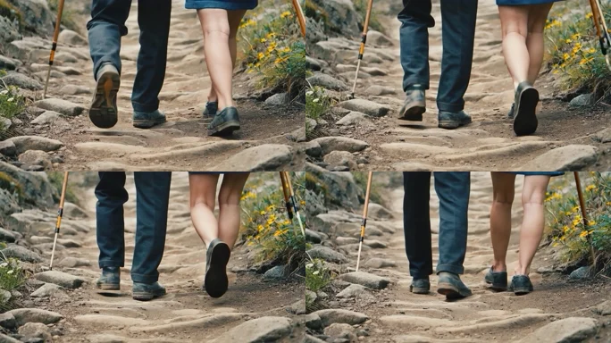 登山脚步特写