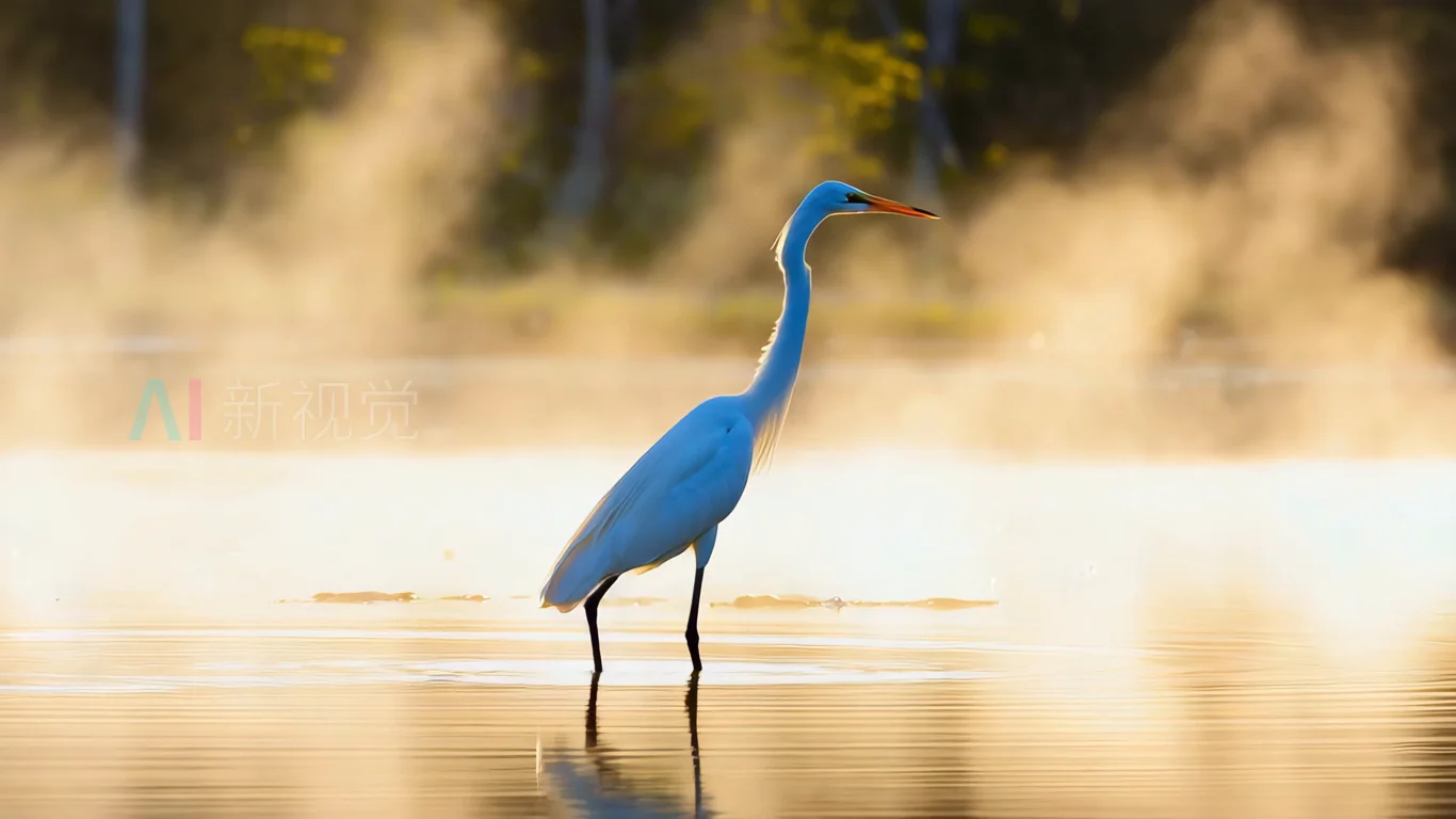 白鹭于水边伫立