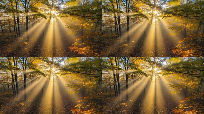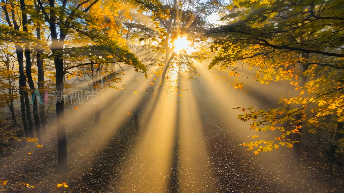 首页 / 视频素材 / AI视频素材(横屏) / 秋日森林阳光穿透树林景象