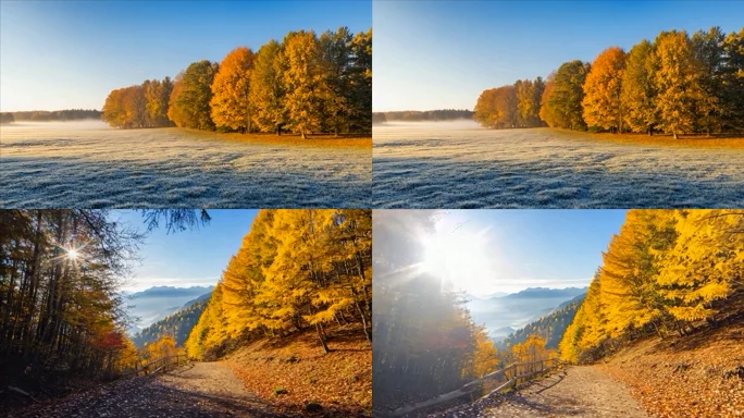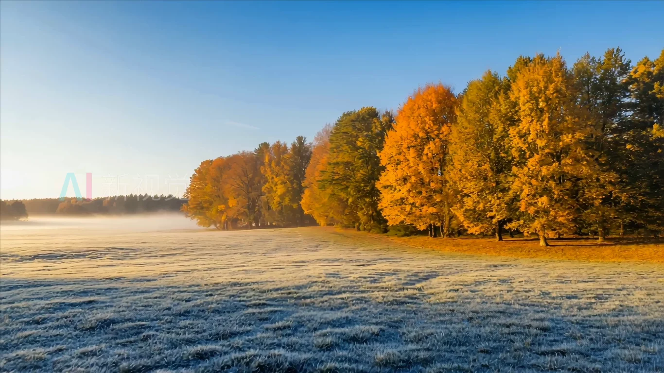 秋日清晨森林旁的草地风光