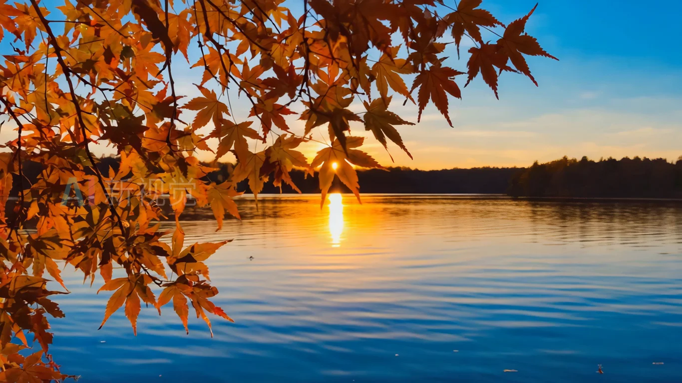 首页 / 视频素材 / AI视频素材(横屏) / 秋日湖畔枫叶自然风景