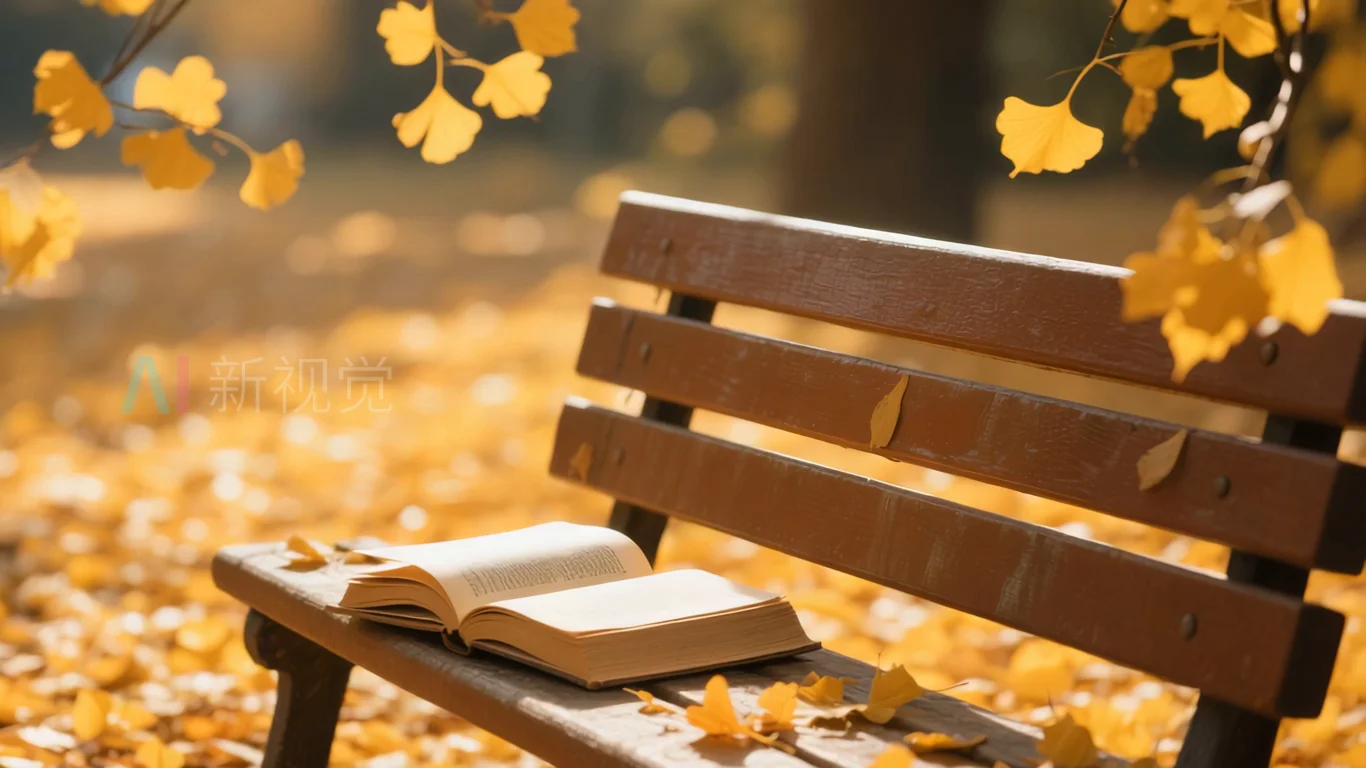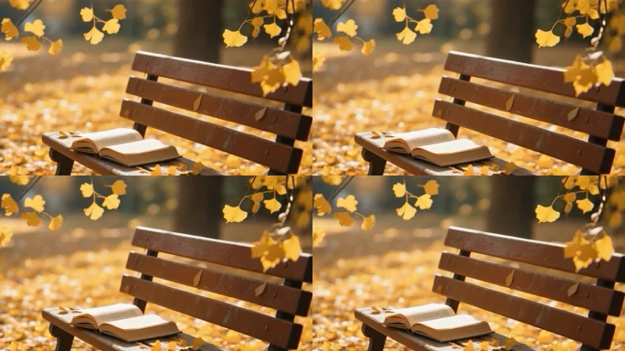 秋日长椅上翻开的书籍