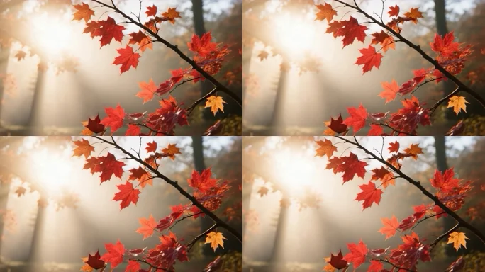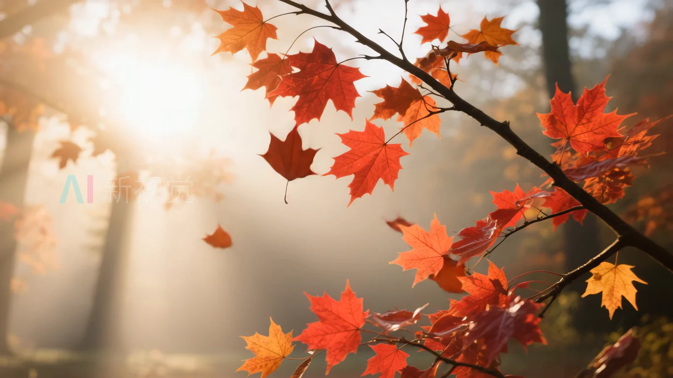 首页 / 视频素材 / AI视频素材(横屏) / 秋日阳光下的枫叶特写