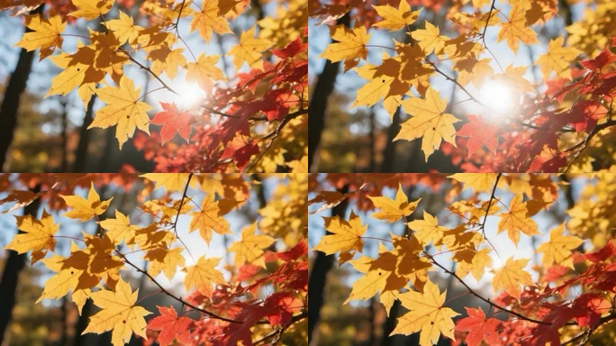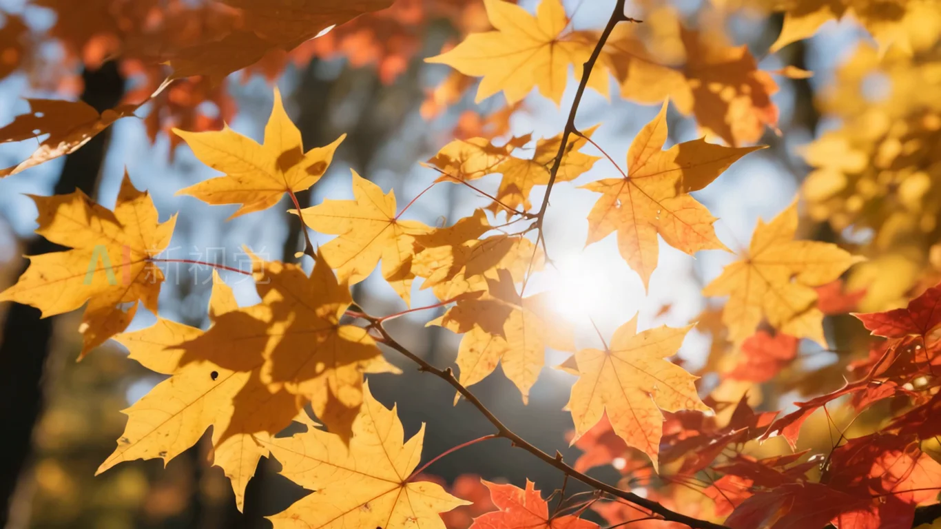秋日阳光下的枫叶特写