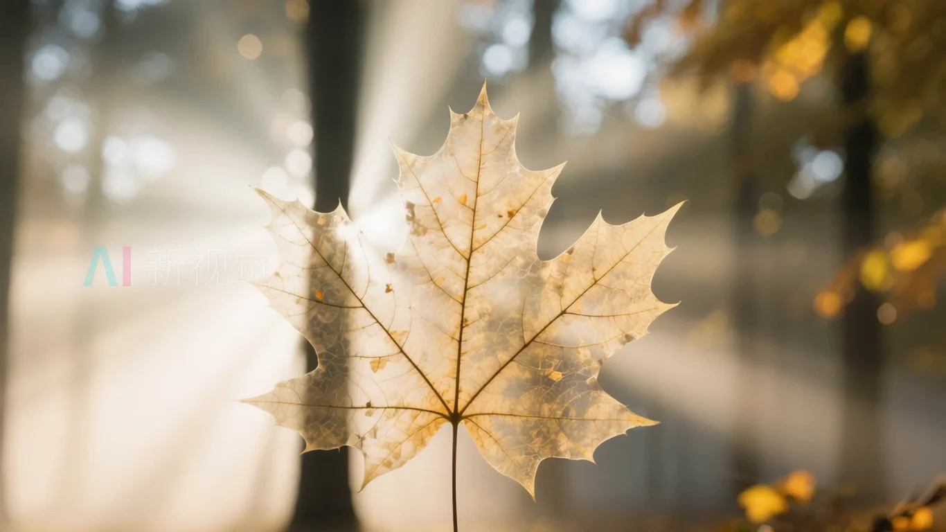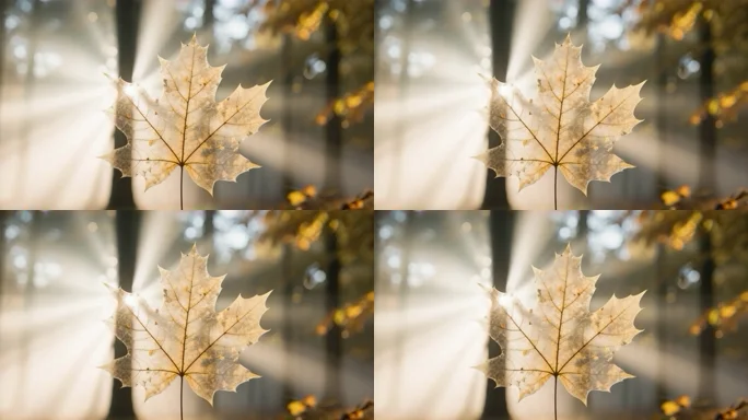 秋日阳光中的枫叶特写