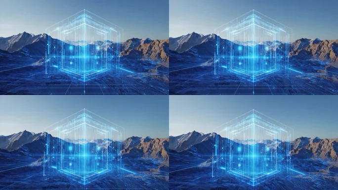 首页 / 视频素材 / AI视频素材(横屏) / 科技感山峰3D渲染画面