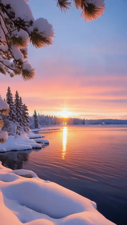 竖屏冬日雪景日落自然风光