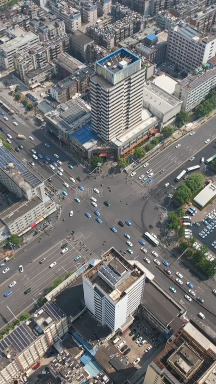 首页 / 视频素材 / 实拍短视频素材(竖屏) / 竖版航拍城市十字交叉路口交通