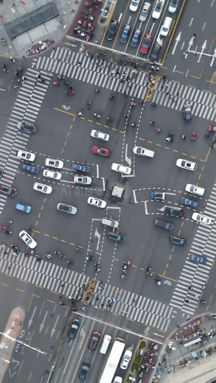 首页 / 视频素材 / 实拍短视频素材(竖屏) / 竖版航拍城市十字交叉路口交通