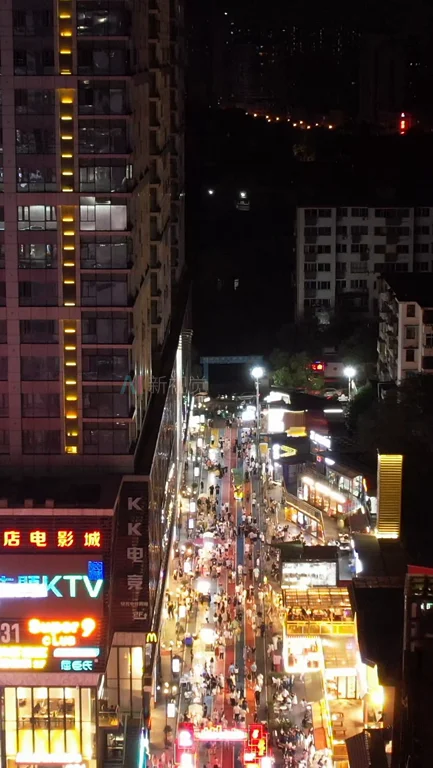 首页 / 视频素材 / 实拍短视频素材(竖屏) / 竖版航拍城市夜景步行街人流