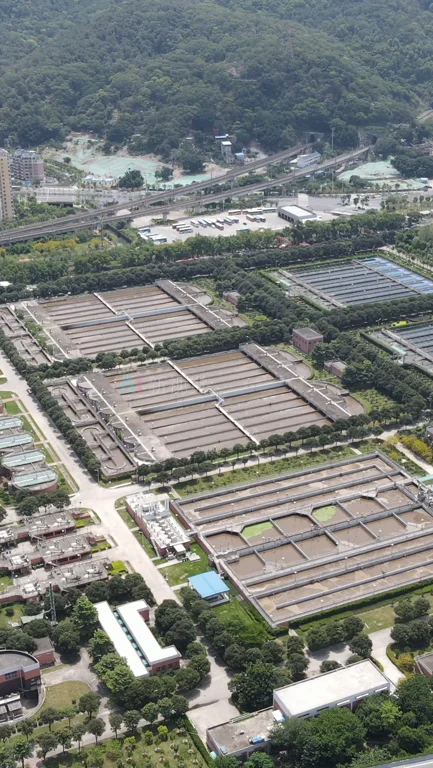 竖版航拍城市工业污水处理厂