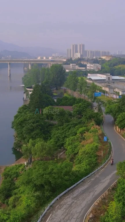首页 / 视频素材 / 实拍短视频素材(竖屏) / 竖版航拍城市沿河风光带