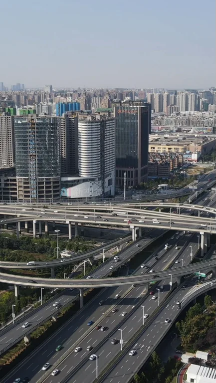 首页 / 视频素材 / 实拍短视频素材(竖屏) / 竖版航拍城市错综复杂高架立交桥交通