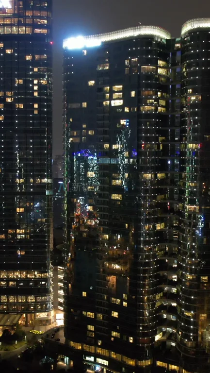 首页 / 视频素材 / 实拍短视频素材(竖屏) / 竖版航拍城市高楼建筑内透光