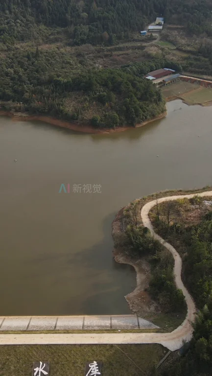 首页 / 视频素材 / 实拍短视频素材(竖屏) / 竖版航拍大山中的水库鱼塘养殖