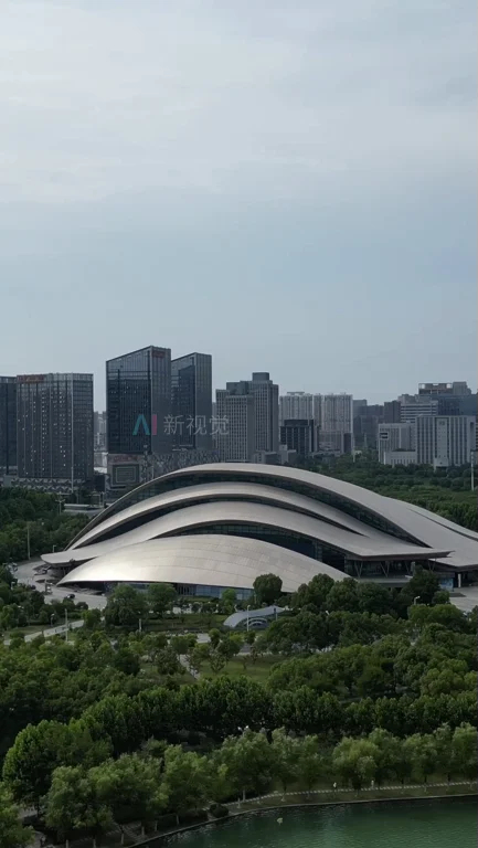 首页 / 视频素材 / 实拍短视频素材(竖屏) / 竖版航拍安徽合肥天鹅湖合肥大剧院