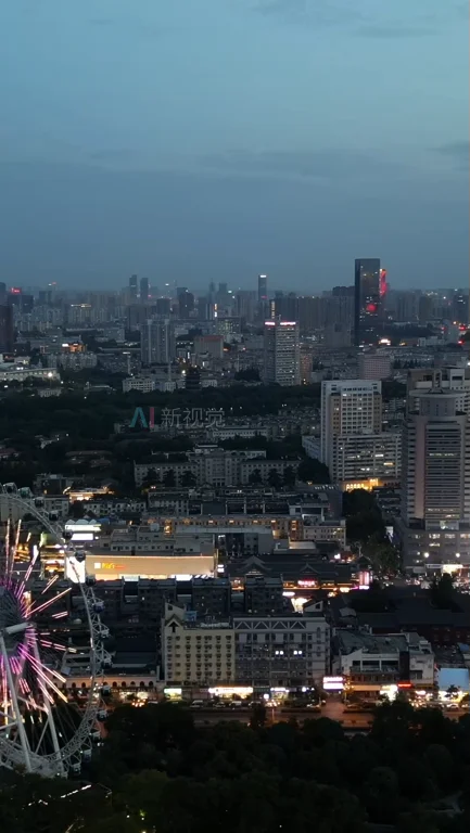竖版航拍安徽合肥天鹅湖夜景合肥CBD夜景