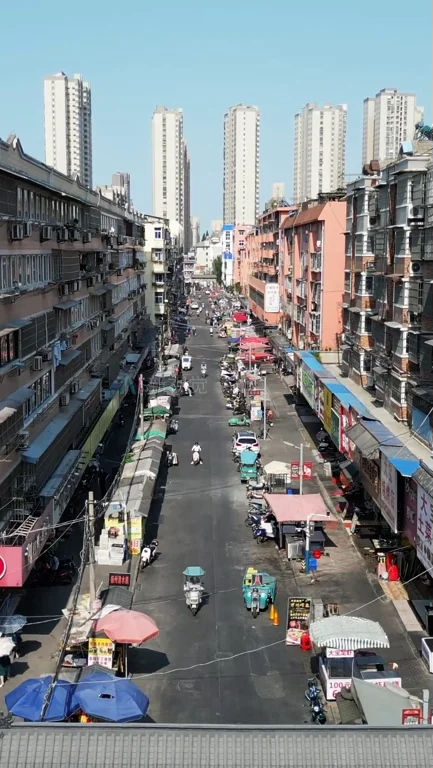 首页 / 视频素材 / 实拍短视频素材(竖屏) / 竖版航拍安徽蚌埠老地委美食街