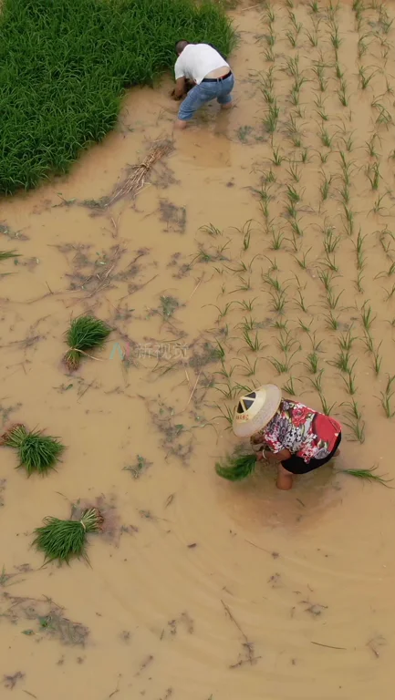 竖版航拍春耕插秧