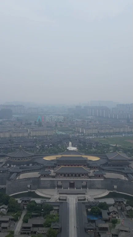 首页 / 视频素材 / 实拍短视频素材(竖屏) / 竖版航拍湖北襄阳盛世唐城景区襄阳唐城影视基地