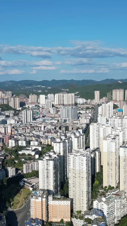 首页 / 视频素材 / 实拍短视频素材(竖屏) / 竖版航拍贵州凯里全景凯里建设
