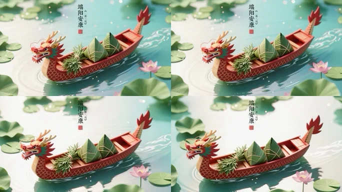 首页 / 视频素材 / AI视频素材(横屏) / 端午龙舟与粽子3D场景