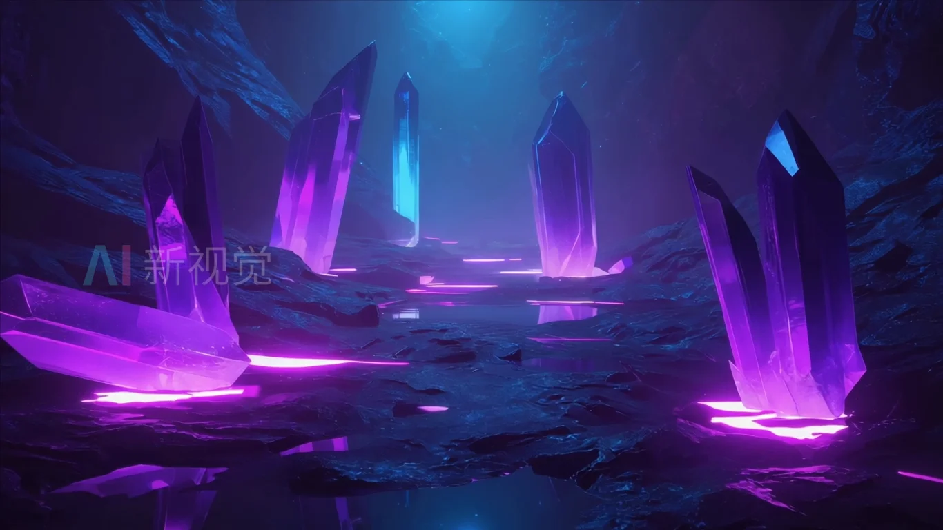 首页 / 视频素材 / AI视频素材(横屏) / 紫色发光水晶3D场景素材