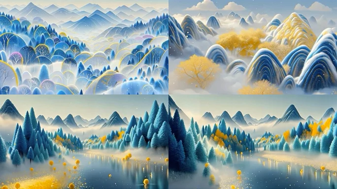 4K,3840*2160,30P,MP4格式 美丽中国水墨画点彩画羊毛毡插画唯美高清风景视频素材