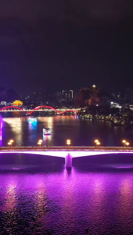 首页 / 视频素材 / 实拍短视频素材(竖屏) / 航拍广西柳州柳江大桥夜景