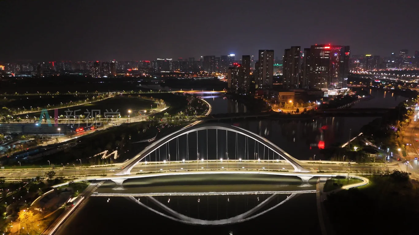 航拍成都天府新城成都金融城锦尚大桥夜景