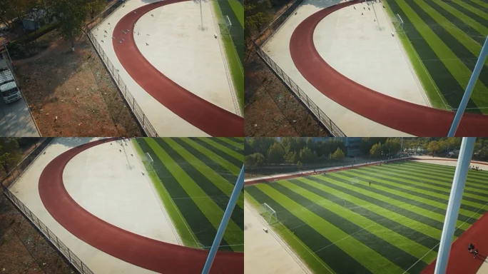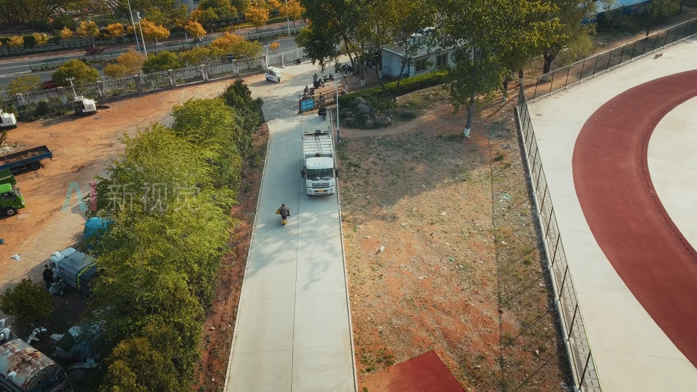 航拍校园,鸟群飞过