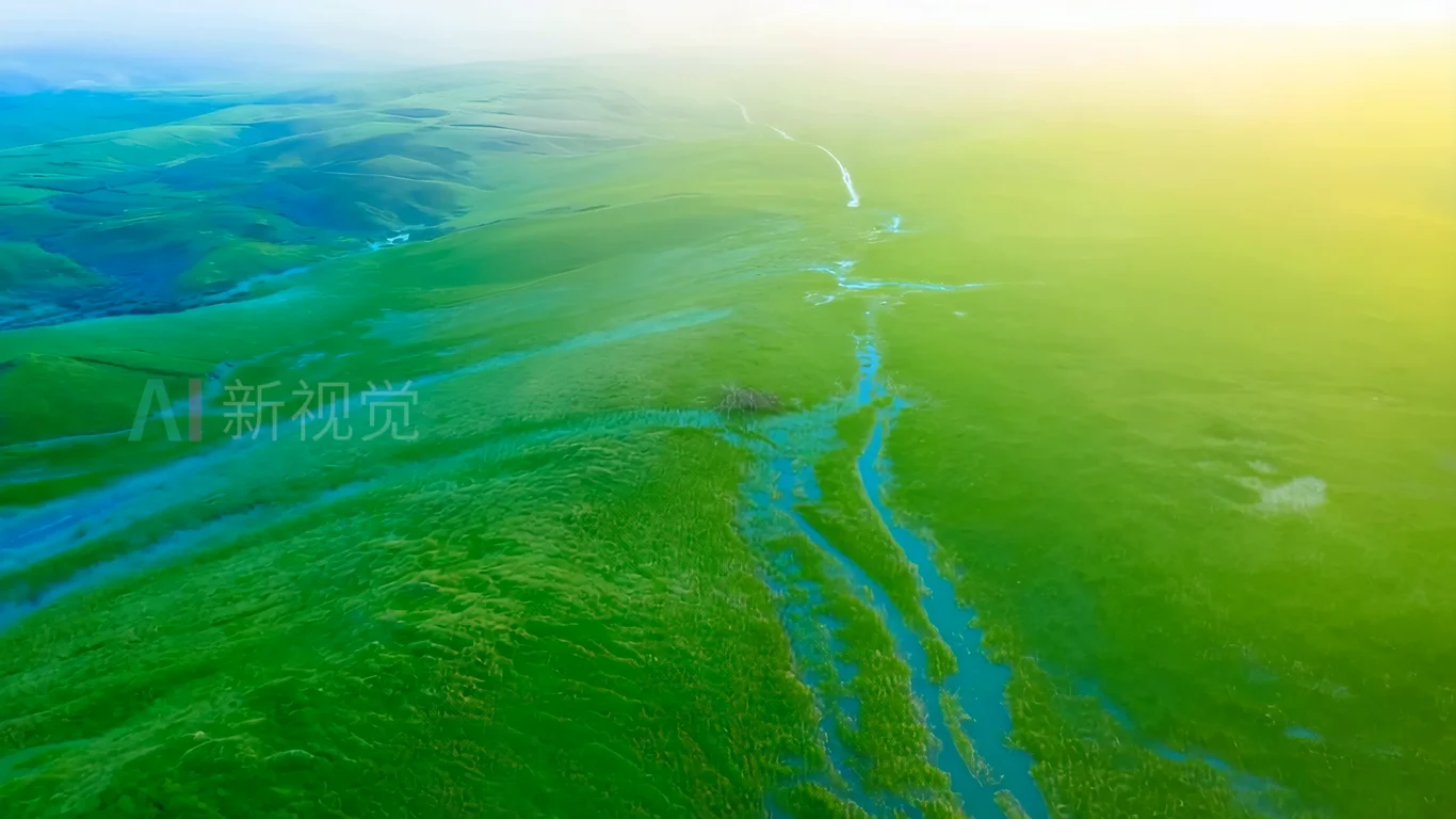首页 / 视频素材 / AI视频素材(横屏) / 航拍草原河流自然风光