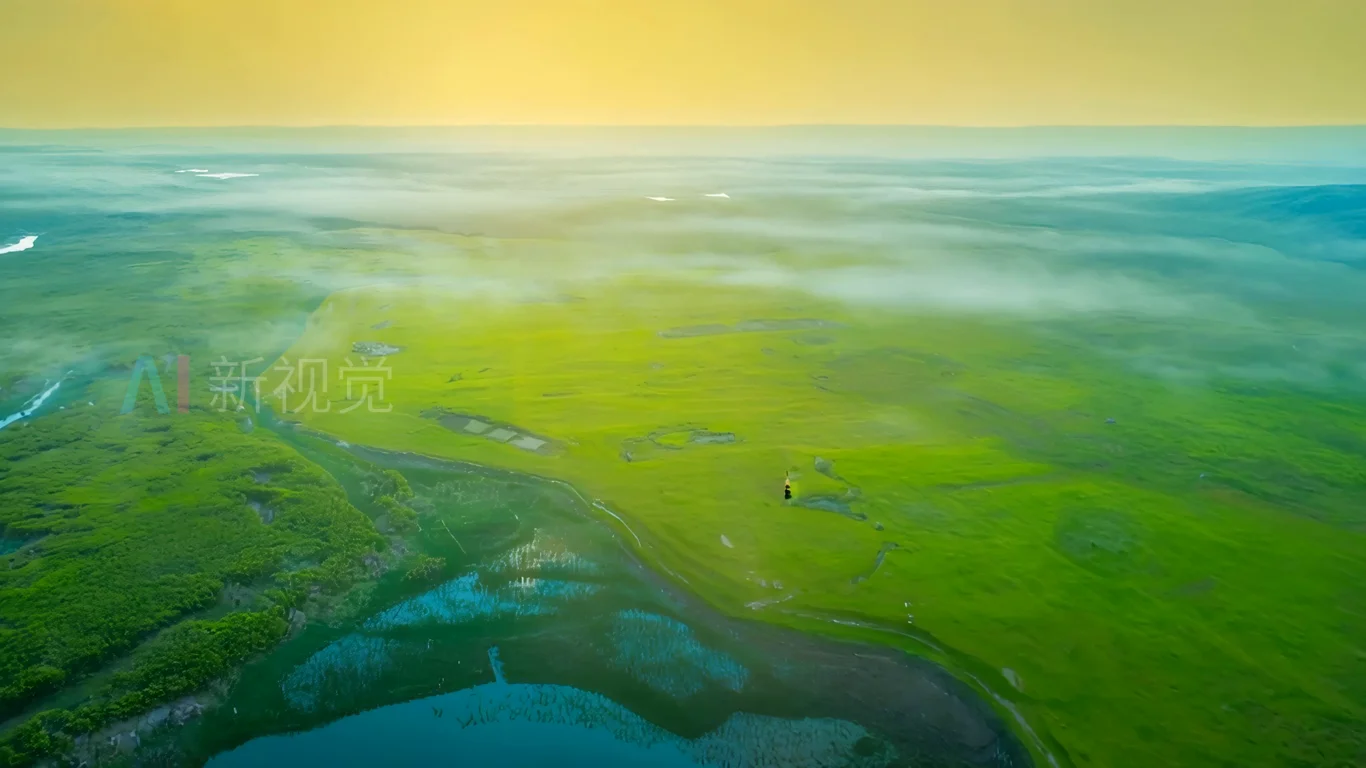 首页 / 视频素材 / AI视频素材(横屏) / 航拍草原河流自然风光