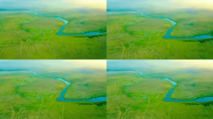 航拍草原河流自然风光
