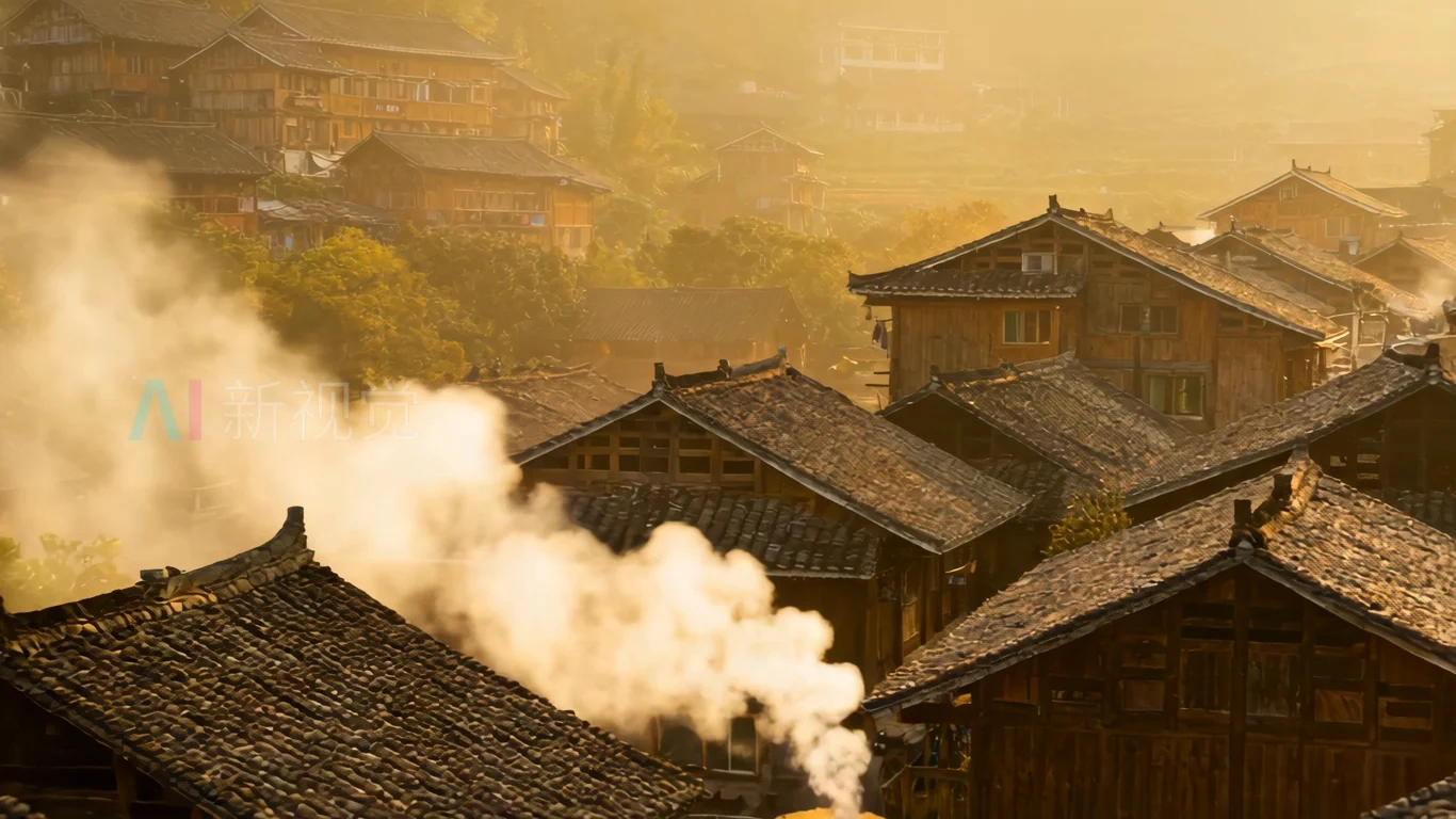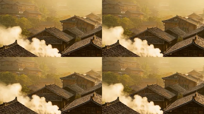 首页 / 视频素材 / AI视频素材(横屏) / 苗寨乡村屋顶炊烟景象