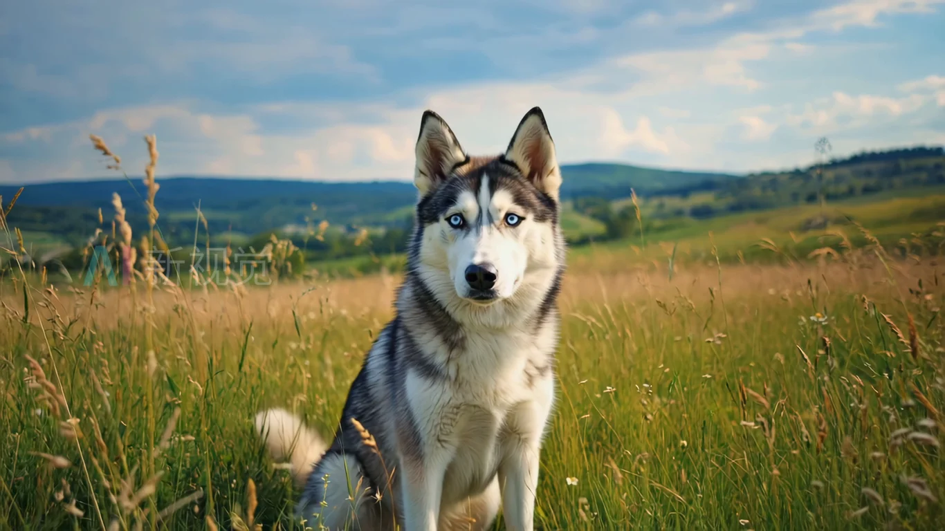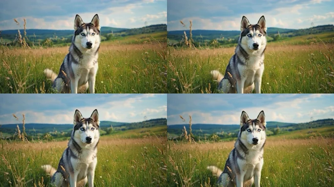 草原上的哈士奇犬