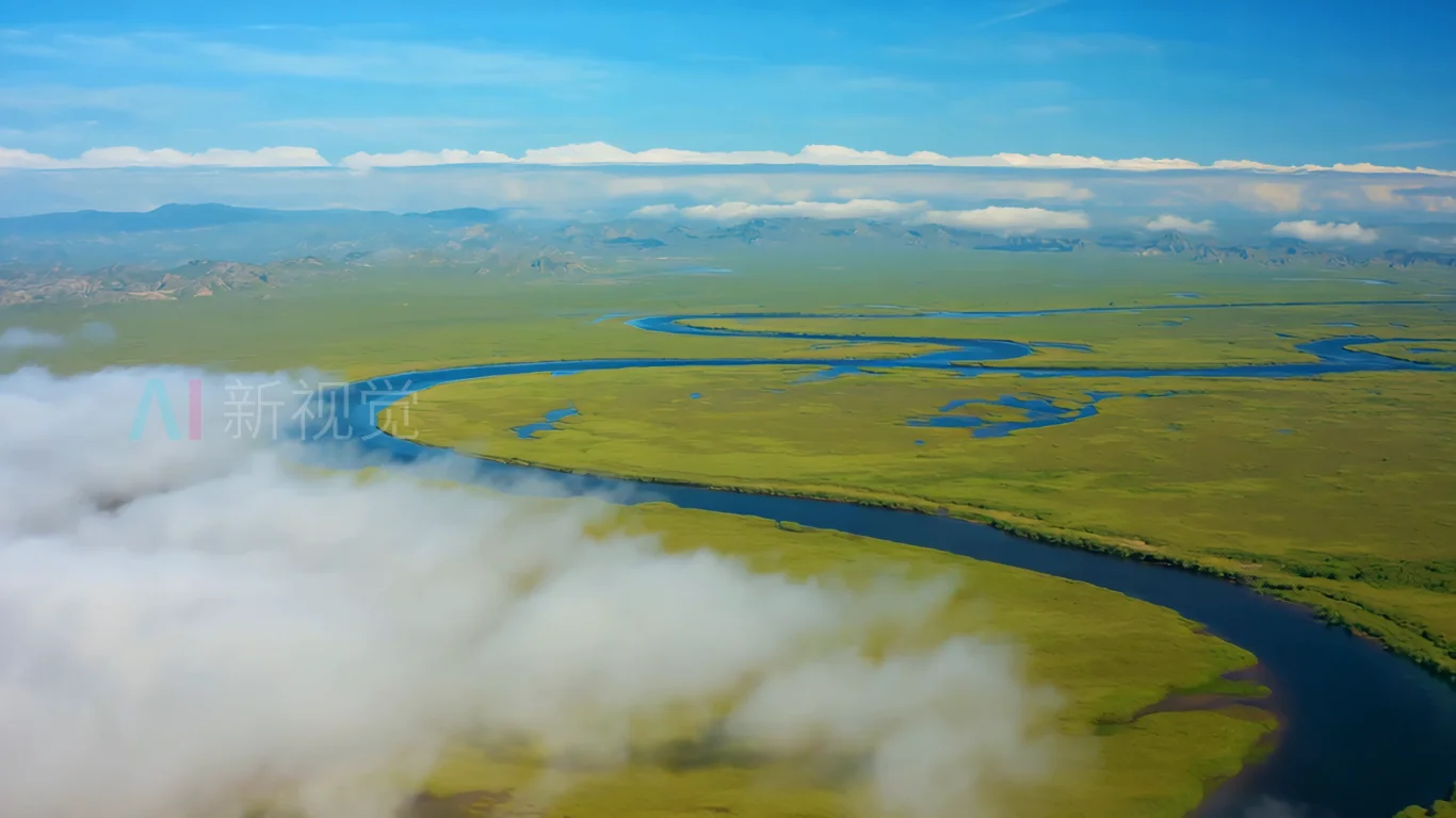 首页 / 视频素材 / AI视频素材(横屏) / 草原河流云雾鸟瞰全景