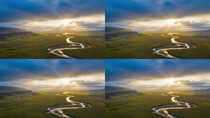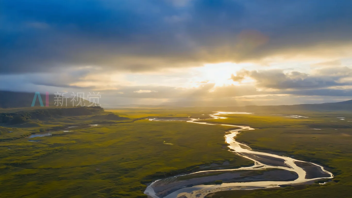 草原河流航拍