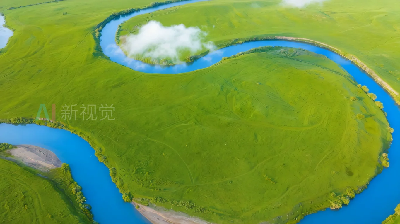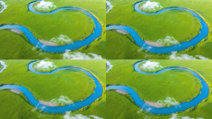 草原蜿蜒河流航拍
