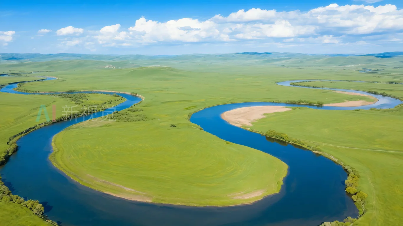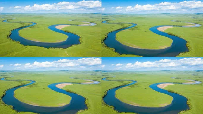 草原蜿蜒河流航拍
