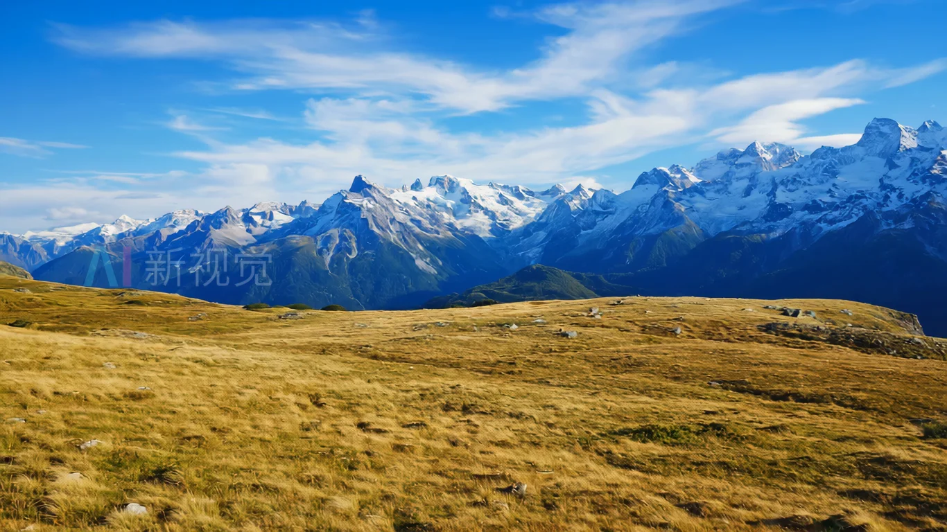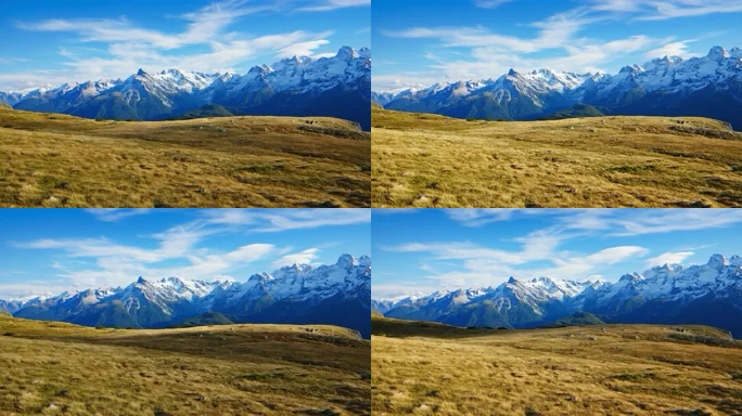 首页 / 视频素材 / AI视频素材(横屏) / 草原雪山蓝天自然风光