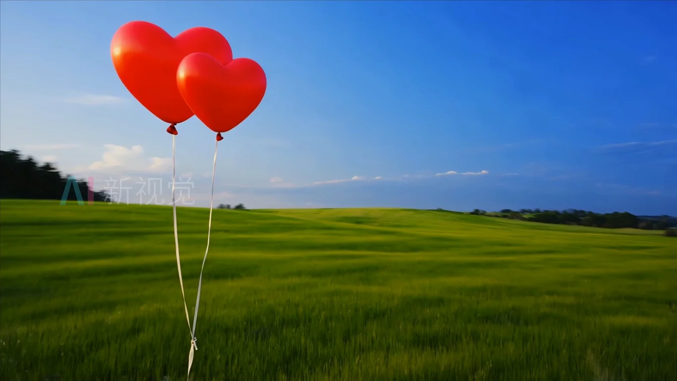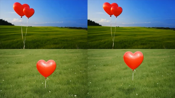 草地上的心形气球素材