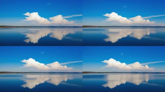 首页 / 视频素材 / AI视频素材(横屏) / 蓝天白云下平静的湖面景观