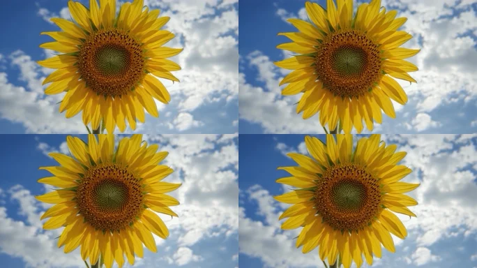首页 / 视频素材 / AI视频素材(横屏) / 蓝天背景下的向日葵特写