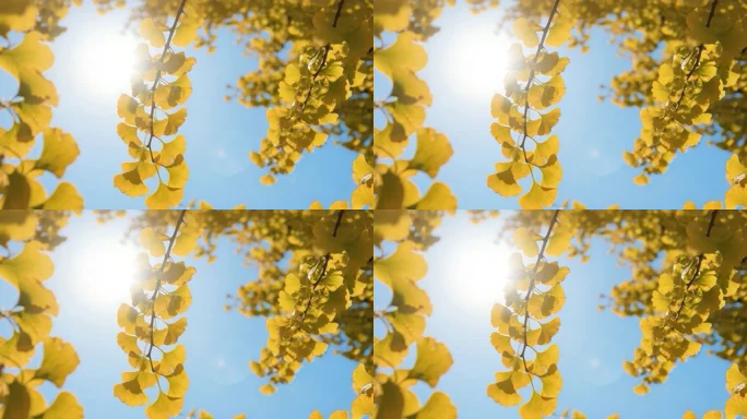 首页 / 视频素材 / AI视频素材(横屏) / 蓝天背景下的金黄银杏叶