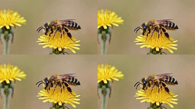 首页 / 视频素材 / AI视频素材(横屏) / 蜜蜂花朵间采蜜特写