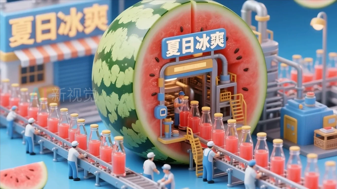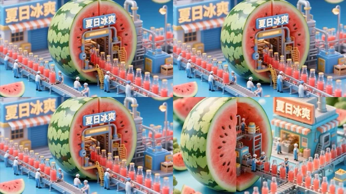西瓜造型饮料工厂微缩场景