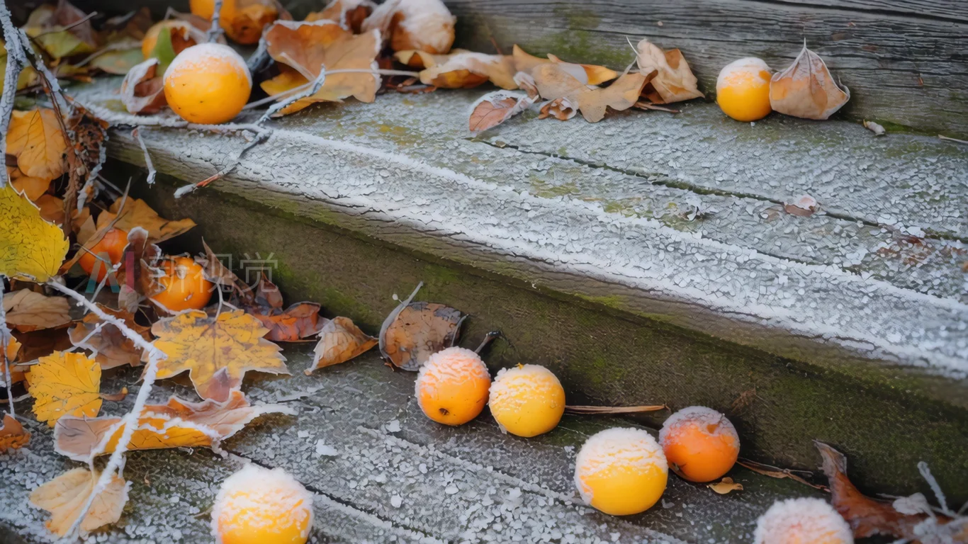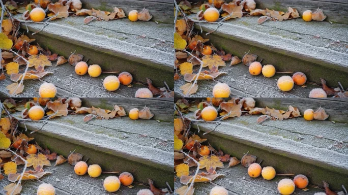 首页 / 视频素材 / AI视频素材(横屏) / 覆霜果实与落叶的台阶景象