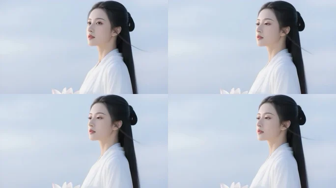 首页 / 视频素材 / AI视频素材(横屏) / 身着汉服女子闭眼静态特写