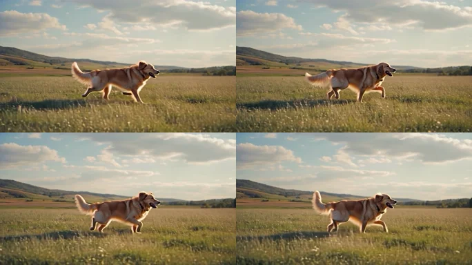 金毛在草地上奔跑
